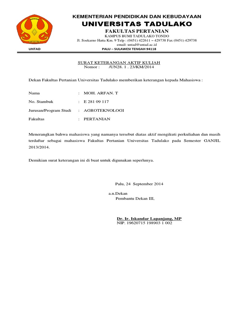 Contoh Surat Keterangan Aktif Kuliah Unima Contoh Surat from 1.bp.blogspot.com Check spelling or type a new query. Maybe you would like to learn more about one of these? We did not find results for: